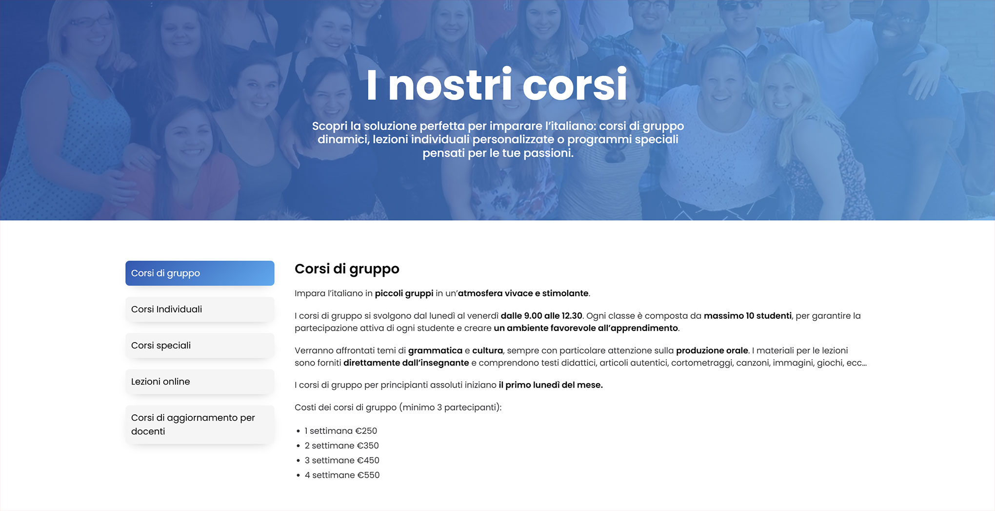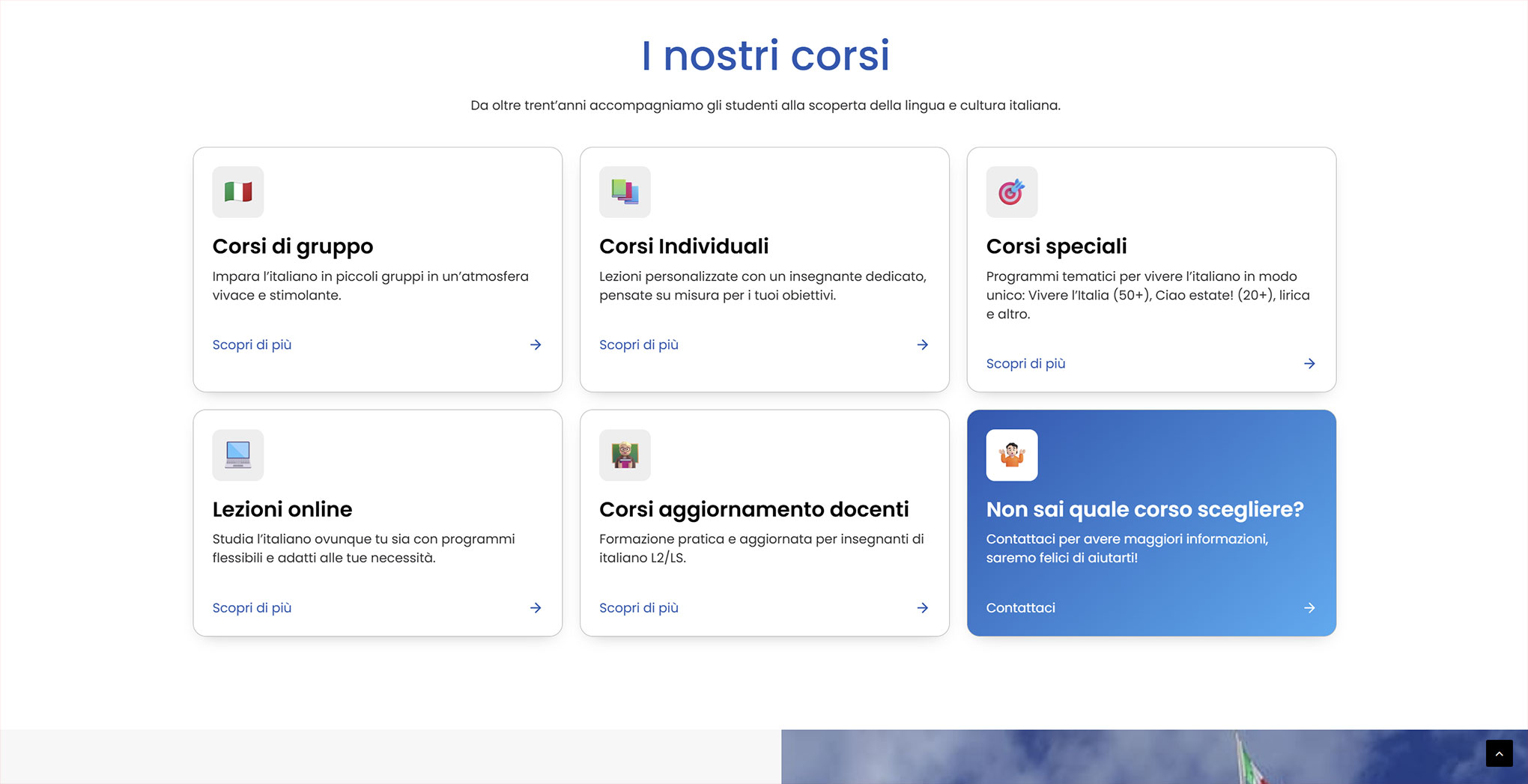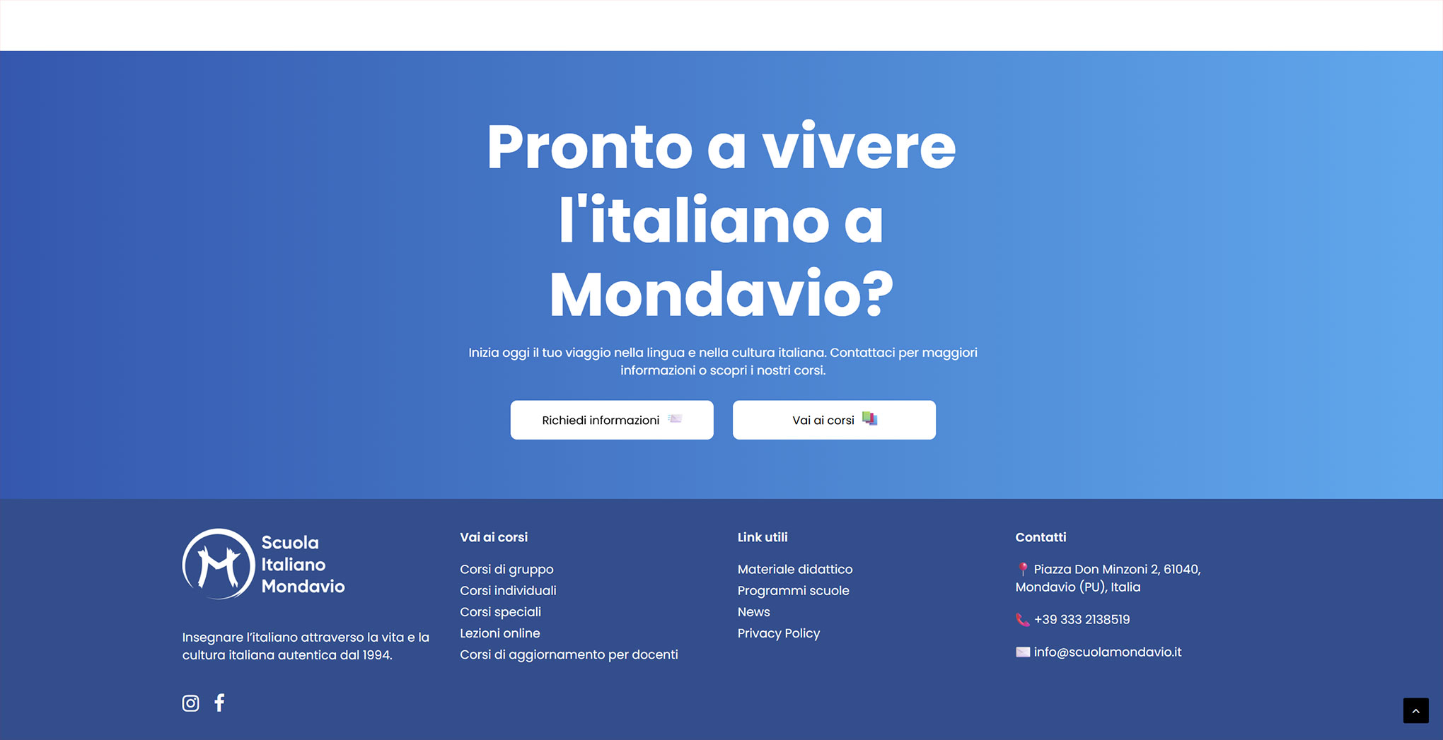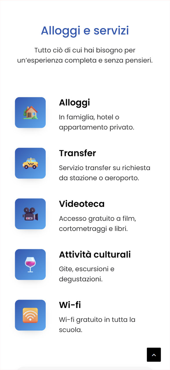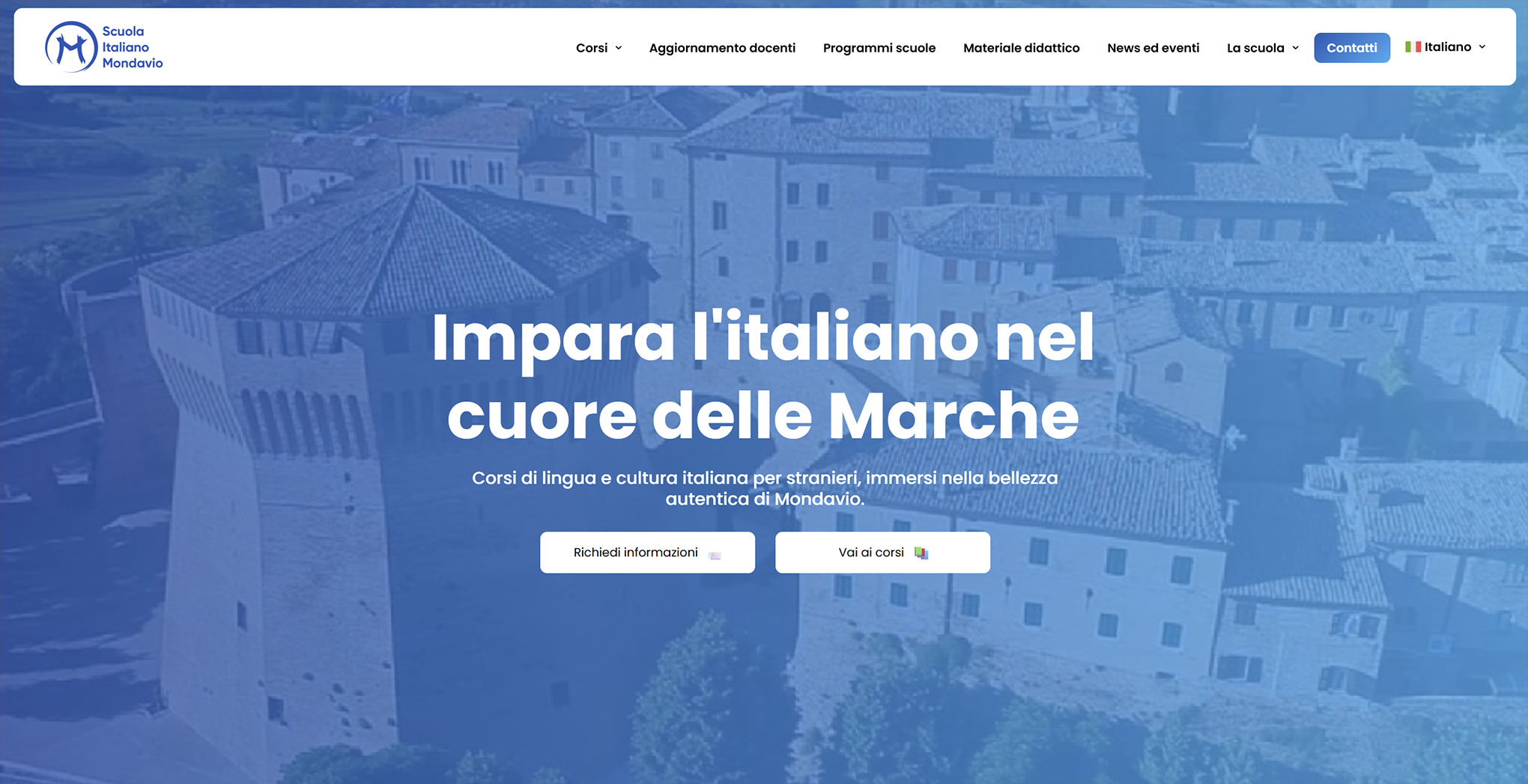 Per Scuola Italiano Mondavio ho sviluppato un sito vetrina multilingua nato per sostituire una piattaforma obsoleta e non ottimizzata. L’obiettivo era creare uno spazio moderno e accogliente che raccontasse corsi, insegnanti e materiale didattico in modo chiaro e coinvolgente. In collaborazione con GBGA Officina Digitale, che ha curato i social, abbiamo progettato una UI giovane e fresca, capace di attrarre nuovi studenti e migliorare concretamente le iscrizioni.